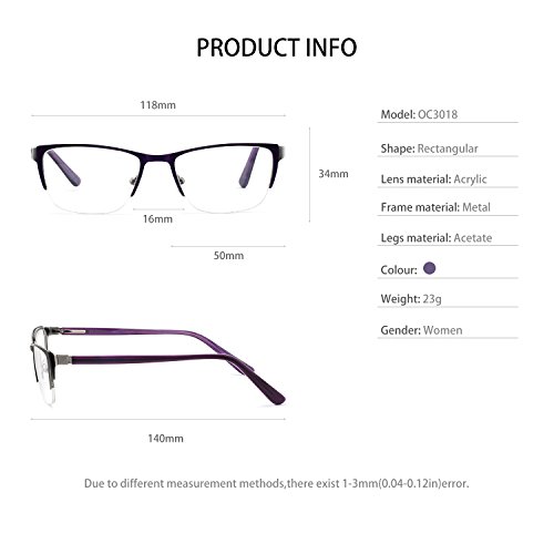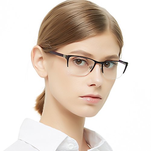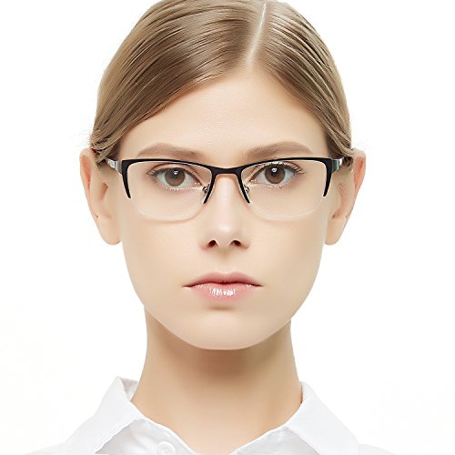 Half Rimeless Rectangle Stylish Eyewear Frame Non-Prescription Eyeglasses With Clear Lenses Gifts For Women Men OCCI CHARI