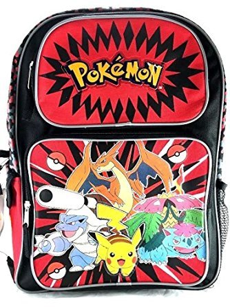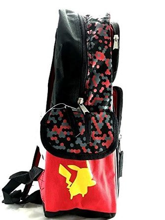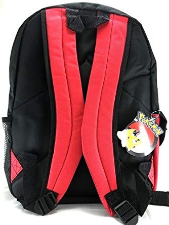 -. Title : Nintendo Pokemon Pikachu Plusle & Minun 16" Canvas Black School Backpack-Red
