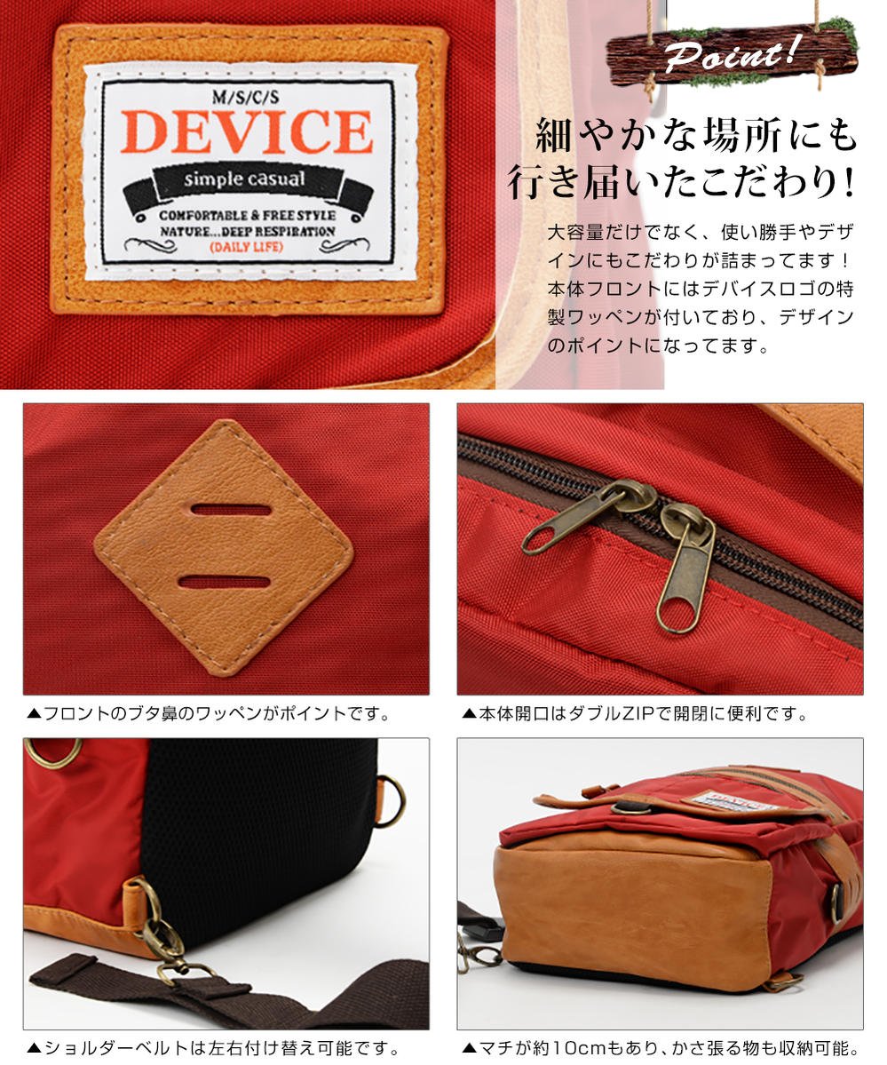 Mega-body bag appeared from DEVICE Camp [camp] series of outdoor atmosphere! Body housed also enter A4 size and 2 liters PET bottles to body bag large capacity! Outdoor scenes and excursions, is perfect to go to school.