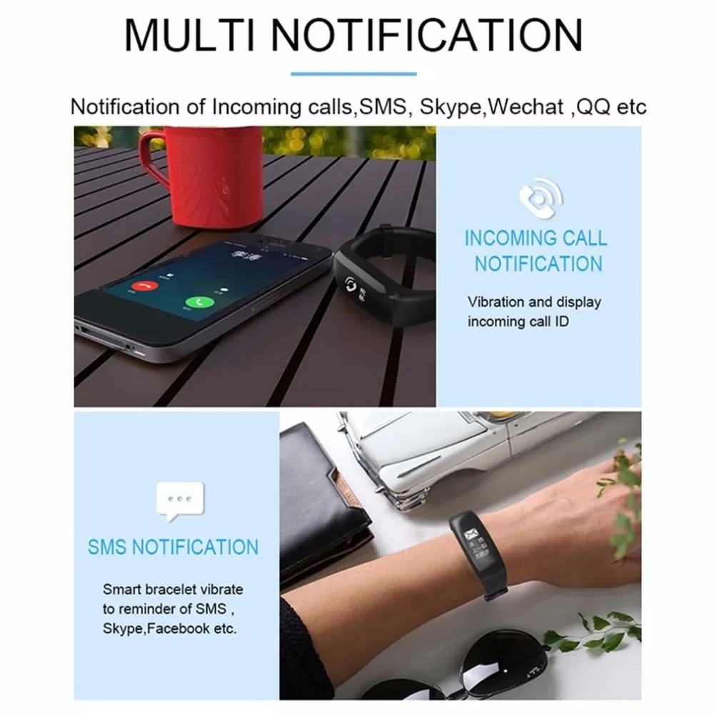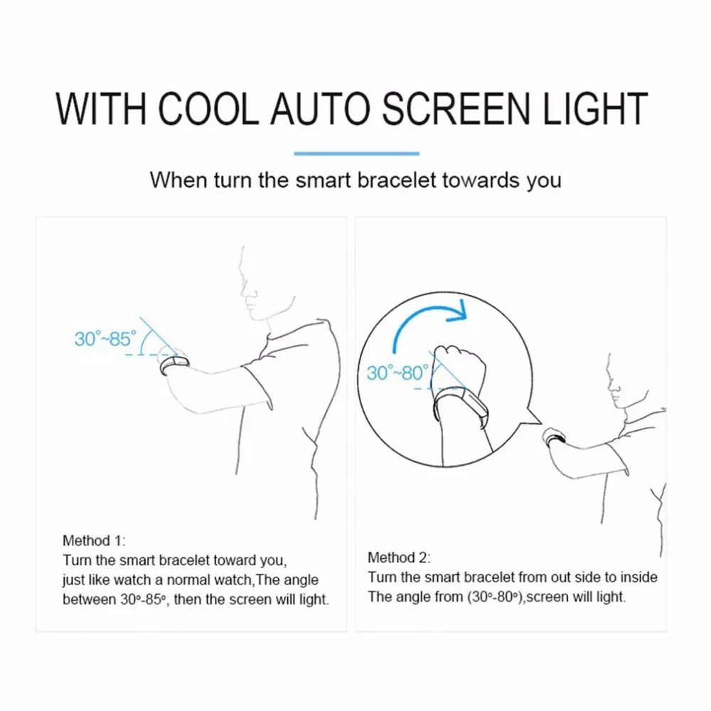Main features:pedometer,mileage,life waterproof,auto screen light,call reminder