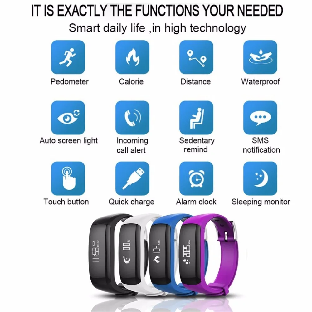 Feature:Water Resistant,LED display,Sleep Tracker,Call Reminder,Bluetooth,Fitness Tracker,Auto Date