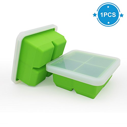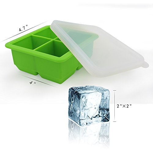 HonTop Ice Cube Tray With Lid, Silicone Ice Cube Mold For Whiskey Drinks Candy , Premium Washable Soft Silicone Extra Large Ice Cube Tray 100% Food –grade BPA Free 2 Inch Large(1pcs)