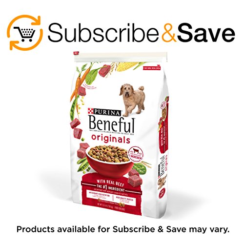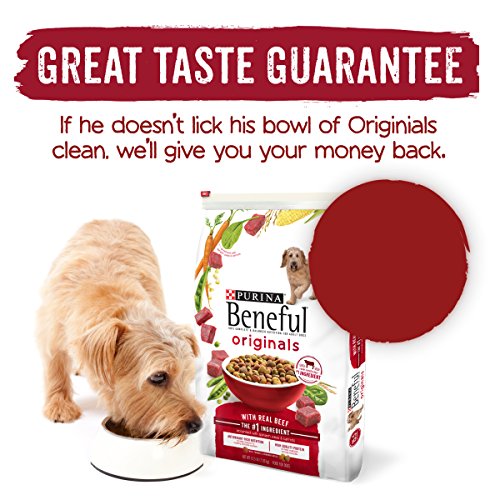 Make mealtime for your dog as tasty as it is nutritious with Purina Beneful Originals With Real Beef adult dry dog food. With real farm-raised beef as the first ingredient, these meaty bites deliver high-quality protein to support strong muscles. Whole grains and accents of real carrots, spinach and peas also help create a perfectly balanced pet food with an irresistible taste for your faithful companion. The enticing mix of tender and crunchy kibble will add variety to his day and keep him coming back for more. Fill his stomach with wholesome ingredients and his heart with your love for a happy, healthy life together. With delectable choices, such as this Purina Beneful Originals With Real Beef dry dog food, on the menu, your dog doesn't want to wait for you to fill his bowl. You shouldn't have to wait either, so place an order for the food he craves on Amazon.com today.