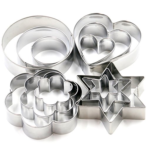 TRIXES 12 Piece Cookie Cutters Star Heart Circle Flower