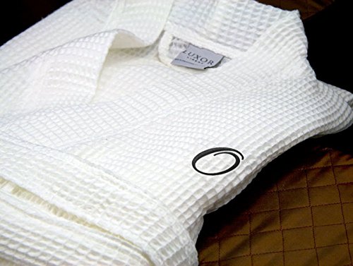 Studio : Luxor Linens Publisher : Luxor Linens Product Description Meticulously crafted in Turkey by the finest robe makers using 100% Egyptian Cotton. A lightweight, luxurious waffle robe that is perfect for the ultimate spa experience. Absorbent and durable! Measurements: Length: 53 inches; Sleeve length: 13 inches; Armhole circumference: 18 inches; Horizontal sweep: 63 inches 0