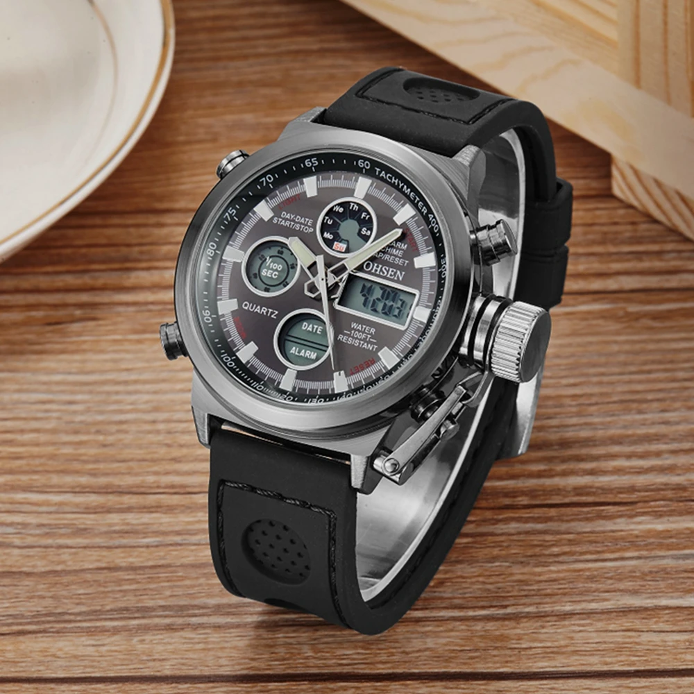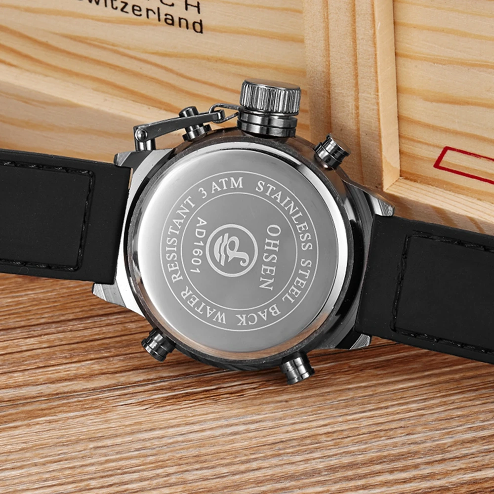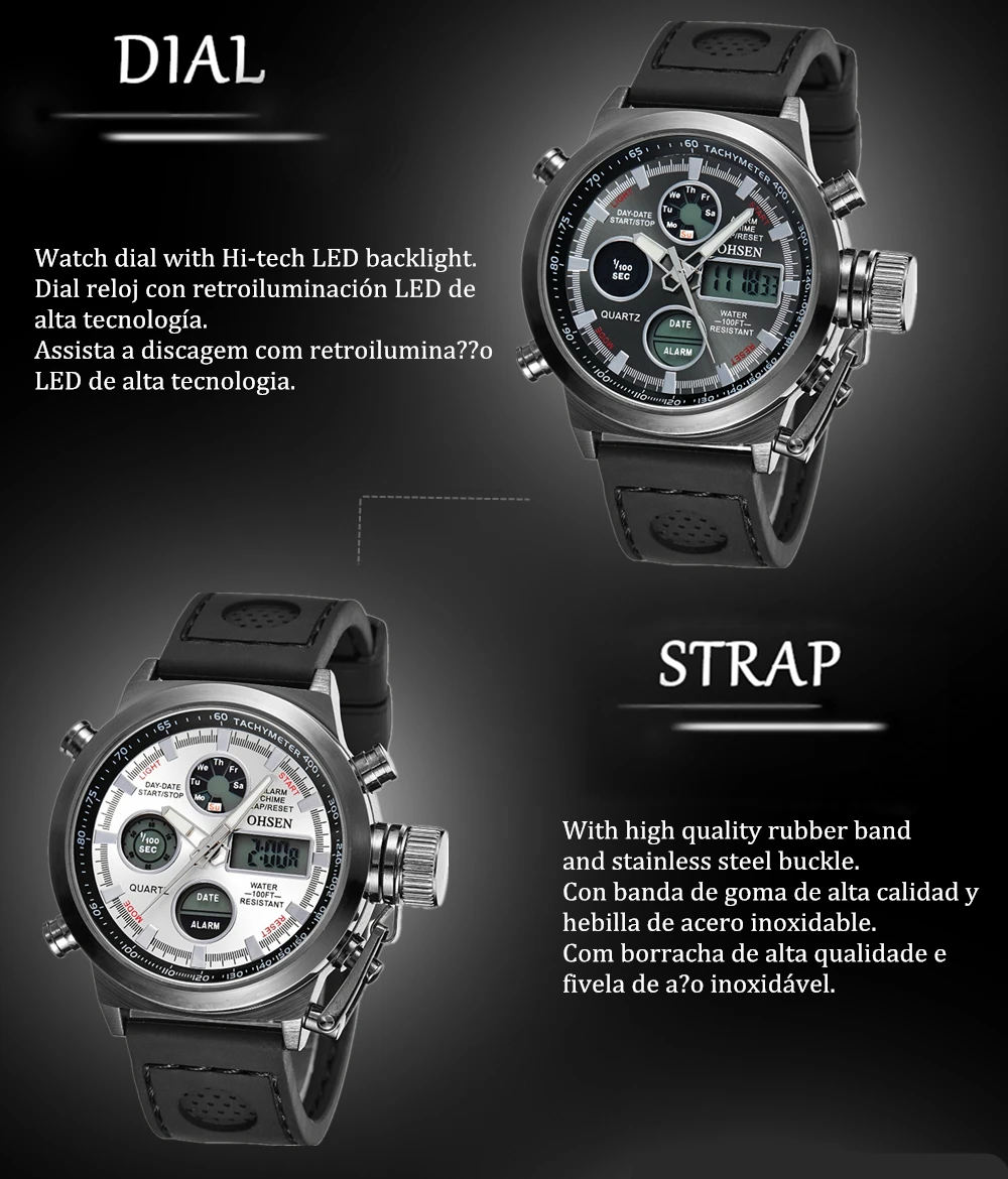 Feature:Back Light,Alarm,Water Resistant,Multiple Time Zone,Chronograph,Shock Resistant,Stop Watch,Complete Calendar,Swim,Auto Date,LED display