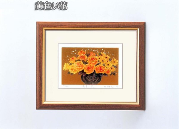 | 美しい色彩と鮮やかな発色が魅力のシルク版画です。花の色に風水の意味が込められており、吉方に飾ると良いとされています。スタンド式で、壁掛けにも置き型にも使用していただけます。 |