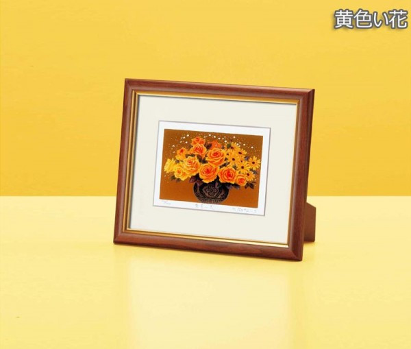 美しい色彩と鮮やかな発色が魅力のシルク版画です。花の色に風水の意味が込められており、吉方に飾ると良いとされています。スタンド式で、壁掛けにも置き型にも使用していただけます。 |