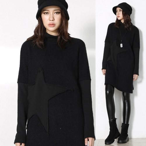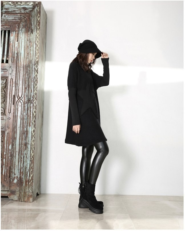 商品名:ワンピース レディース チュニック 無地 長袖 ウール混 秋 冬 2017 モード系 個性的 40代 ファッション