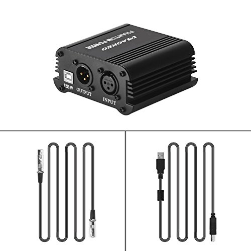 -. Title : Aokeo 48V Phantom Power Supply Powered by USB plug in, included with 8 feet USB Cable, BONUS + XLR 3 Pin Microphone Cable for Any Condenser Microphone Music Recording Equipment