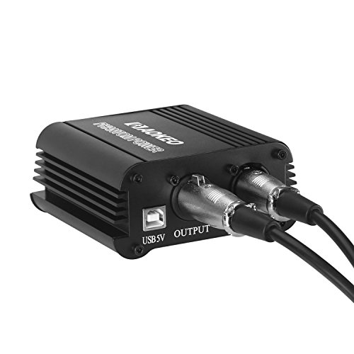 -. Feature : Delivers reliable 48V phantom power for condenser microphones and transfer sound signal to sound card in a compact, durable, plastic housing. / Universal XLR input and output, compatible with all kinds of microphone music recording equipment. Comes with one XLR audio cable with high quality XLR male and female connectors. / Newly Improved technology powered by a USB Cable to give the best results without having to find a wall outlet. Features a single channel unit with balanced mic inputs and outputs to connect in-line with your mic and mixer. / On/Off power switch and LED indicator for ease of operation. One Adapter is included. Simple to use and ideal for stage and studio use. / Note: Phantom power provides a 48V voltage to the condenser microphone, but phantom power does not enhance the microphone sound quality and improve the normal volume. Input Voltage: 110V. Microphone is not included.