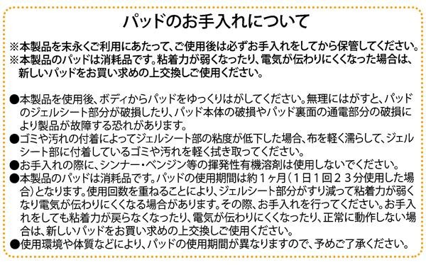 | 仕様 | パッド使用期間目安:約1ヶ月(1日1回23分間使用する場合) |