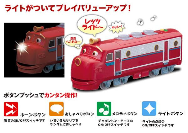 手押しで遊べるサウンドチャガーシリーズです。ウィルソンの豊富なボイスと、チャギントンのテーマソングが楽しい♪ホーン音とライト点灯機能も付いて、さらに遊びに幅が広がります。ホーン音、おしゃべりボイス、テーマソング、ライトの点灯はボタン操作でコントロール可能です。 |