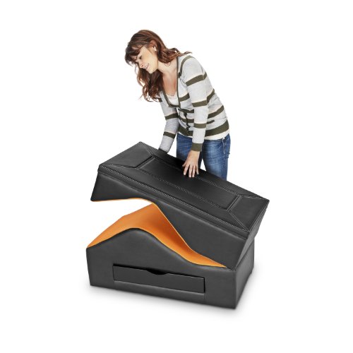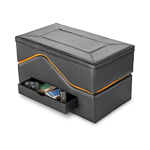 - Feature : Stylish 2 piece ottoman flips open to become a comfortable lounger / Pull-out storage drawer at bottom helps you cut the clutter / Made of durable and attractive vinyl and cool bright orange breathable mesh / Looks great in the game room, whether as a sleek ottoman or as a hip two-piece lounger / Room for one or two people to enjoy gaming, watching TV, or resting