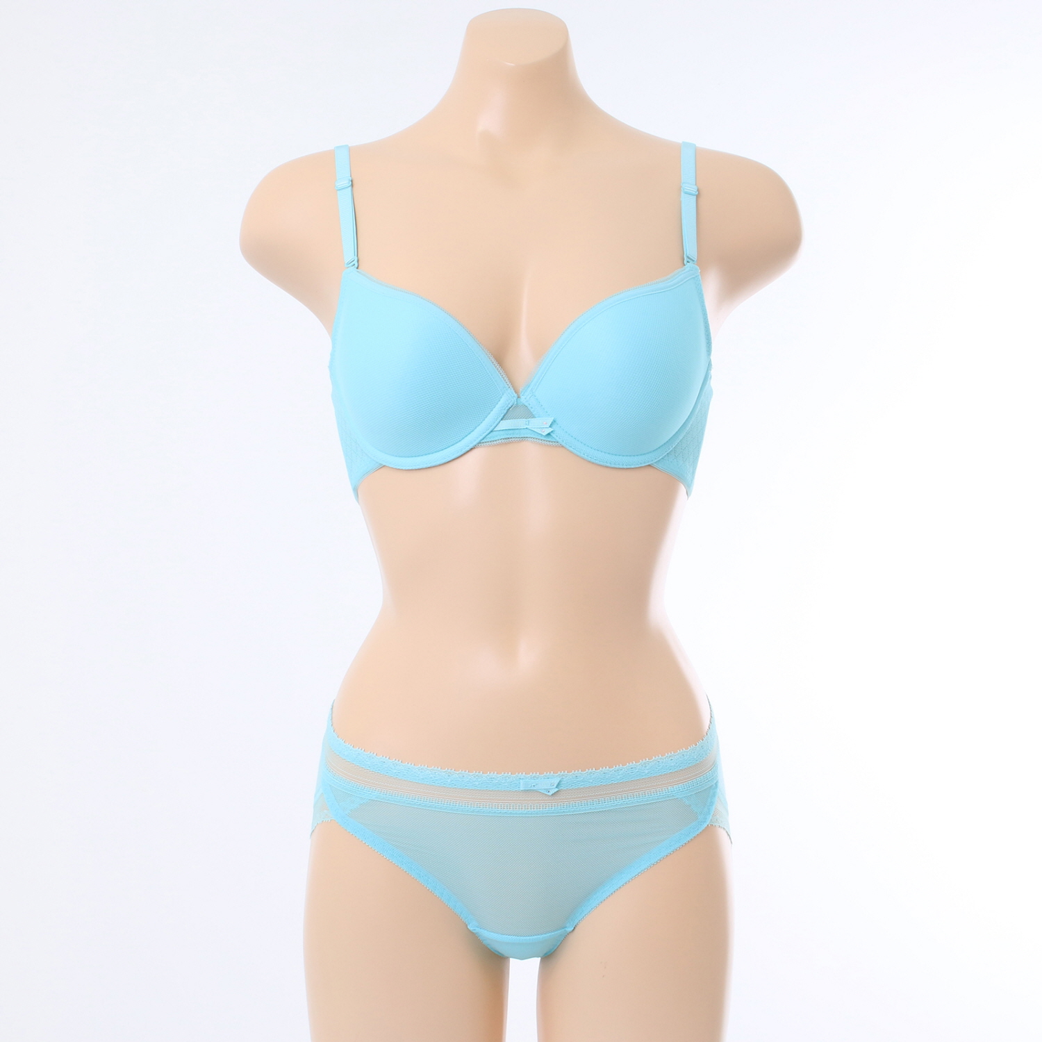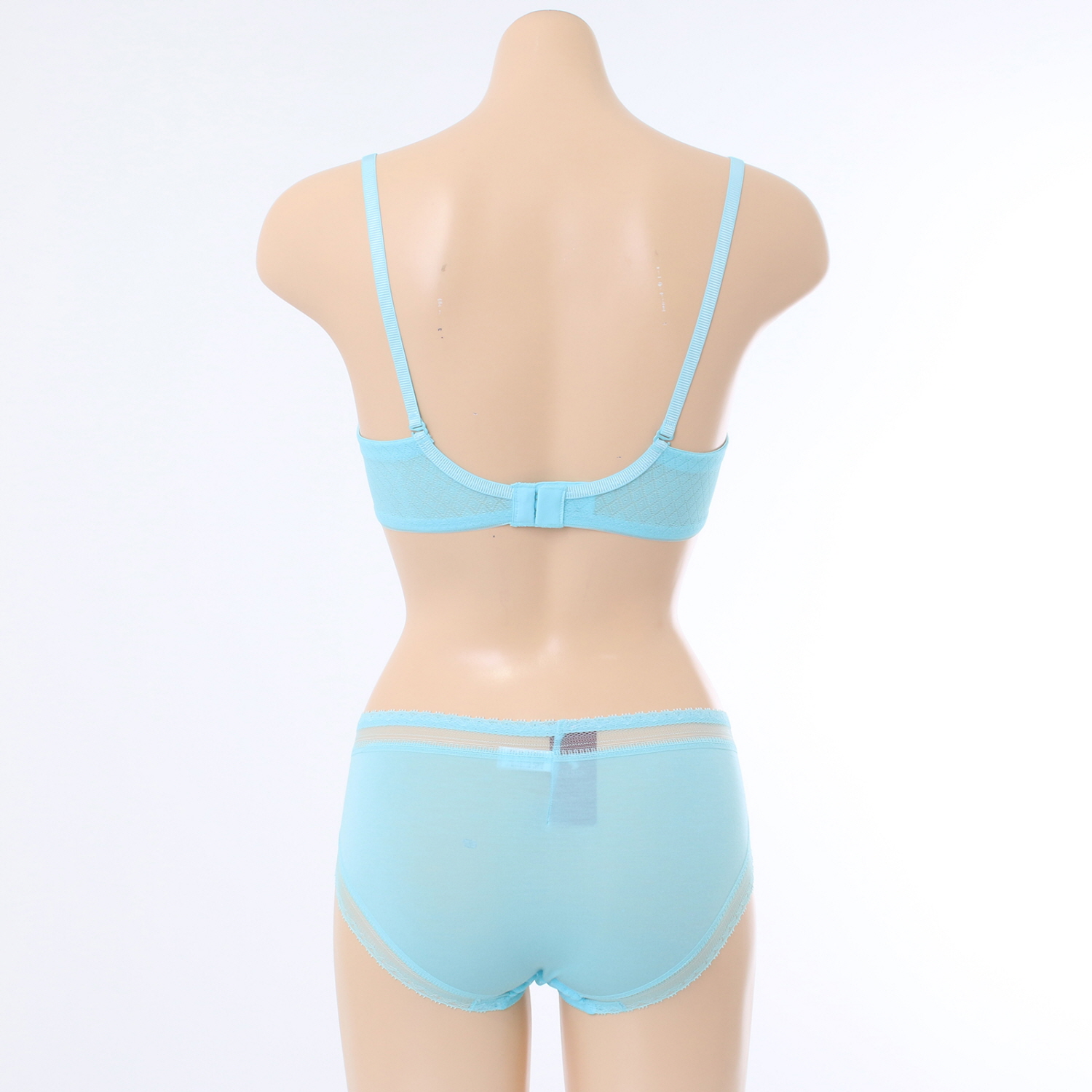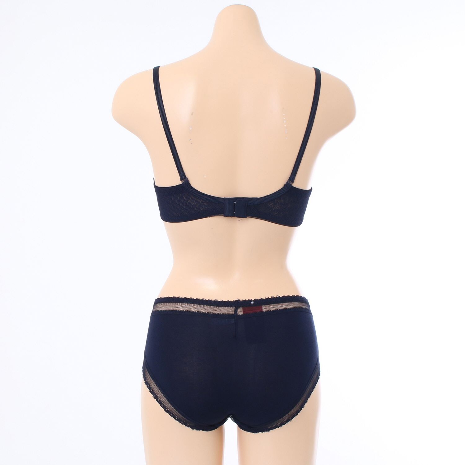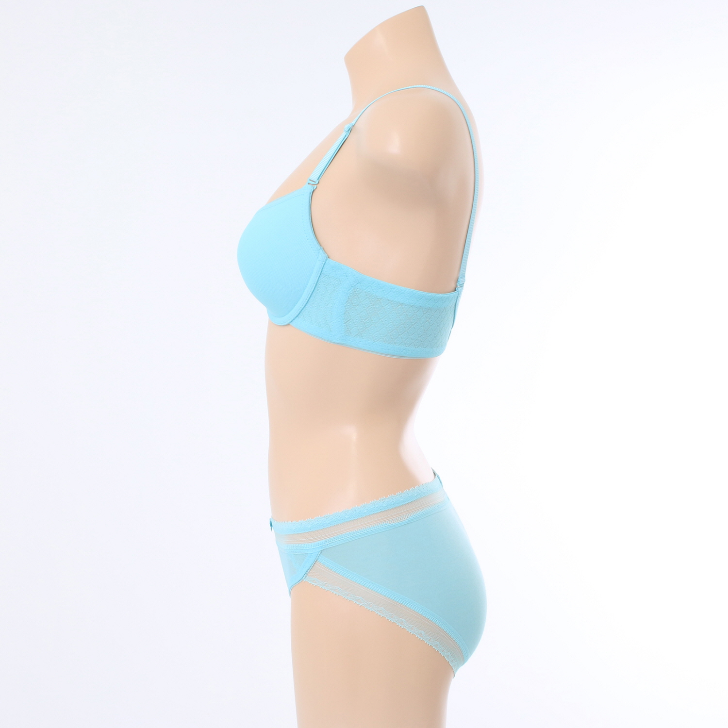 홀이 크고 시원한 메쉬원단에 허리와 다리에 소폭레이스를 매치하여
