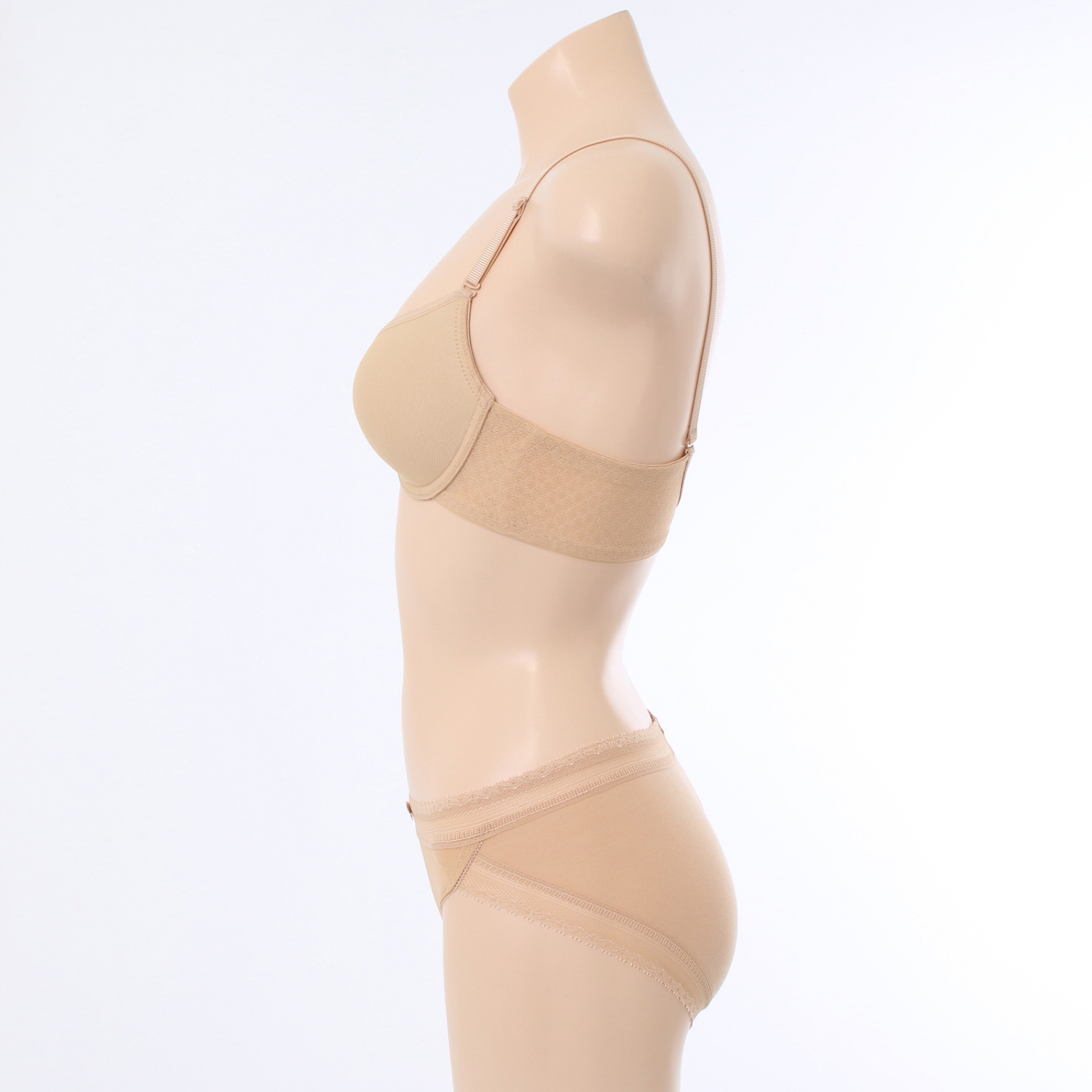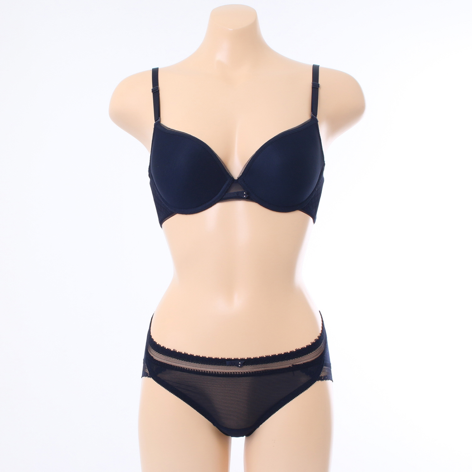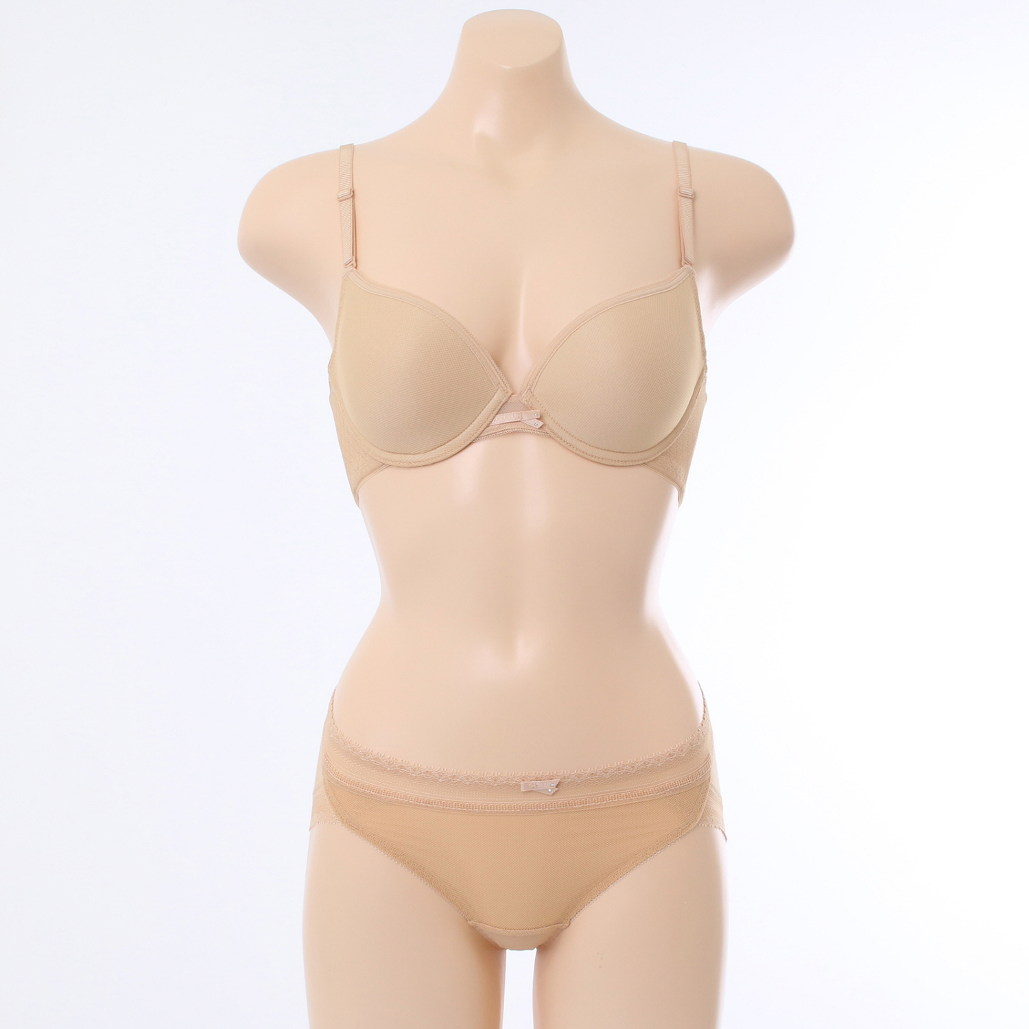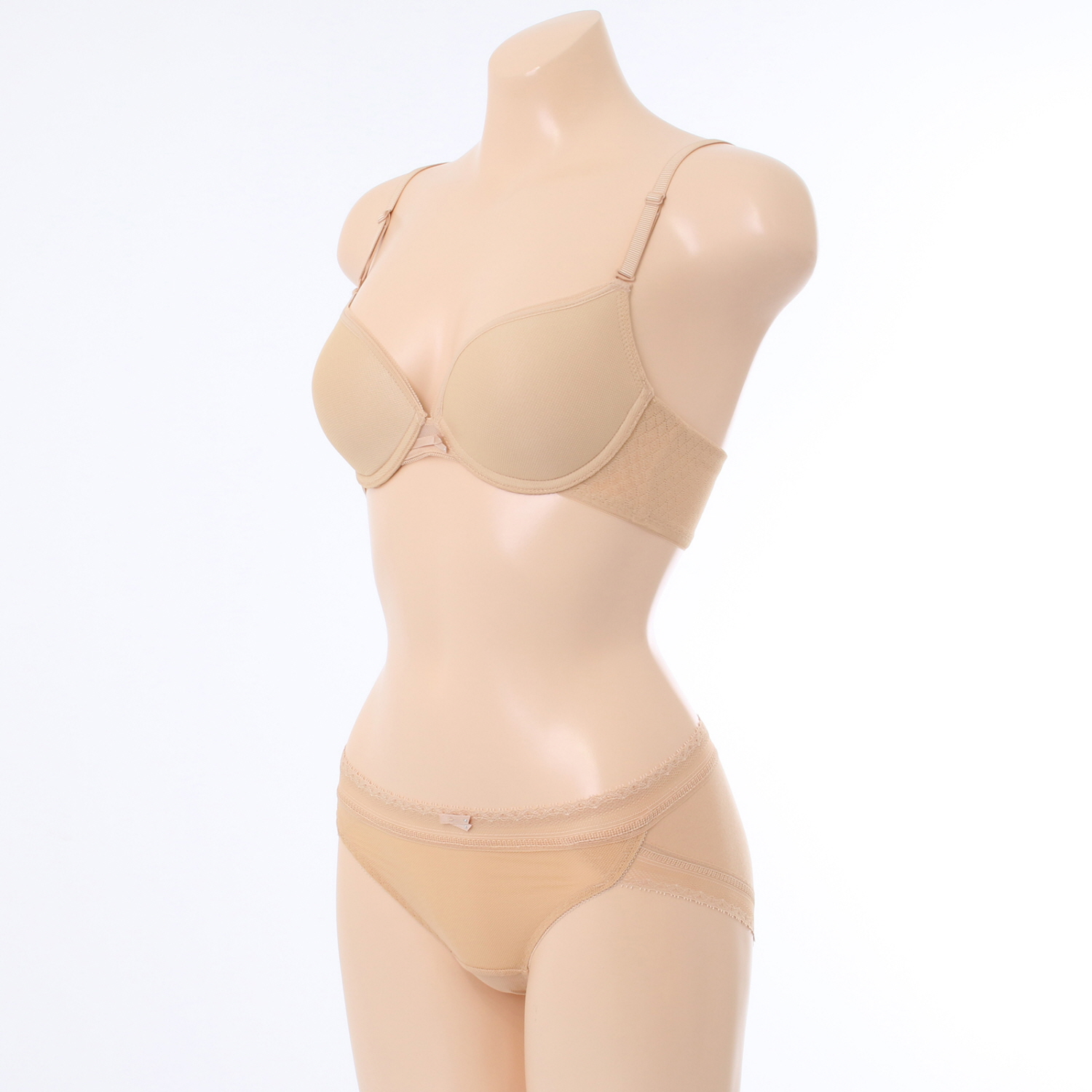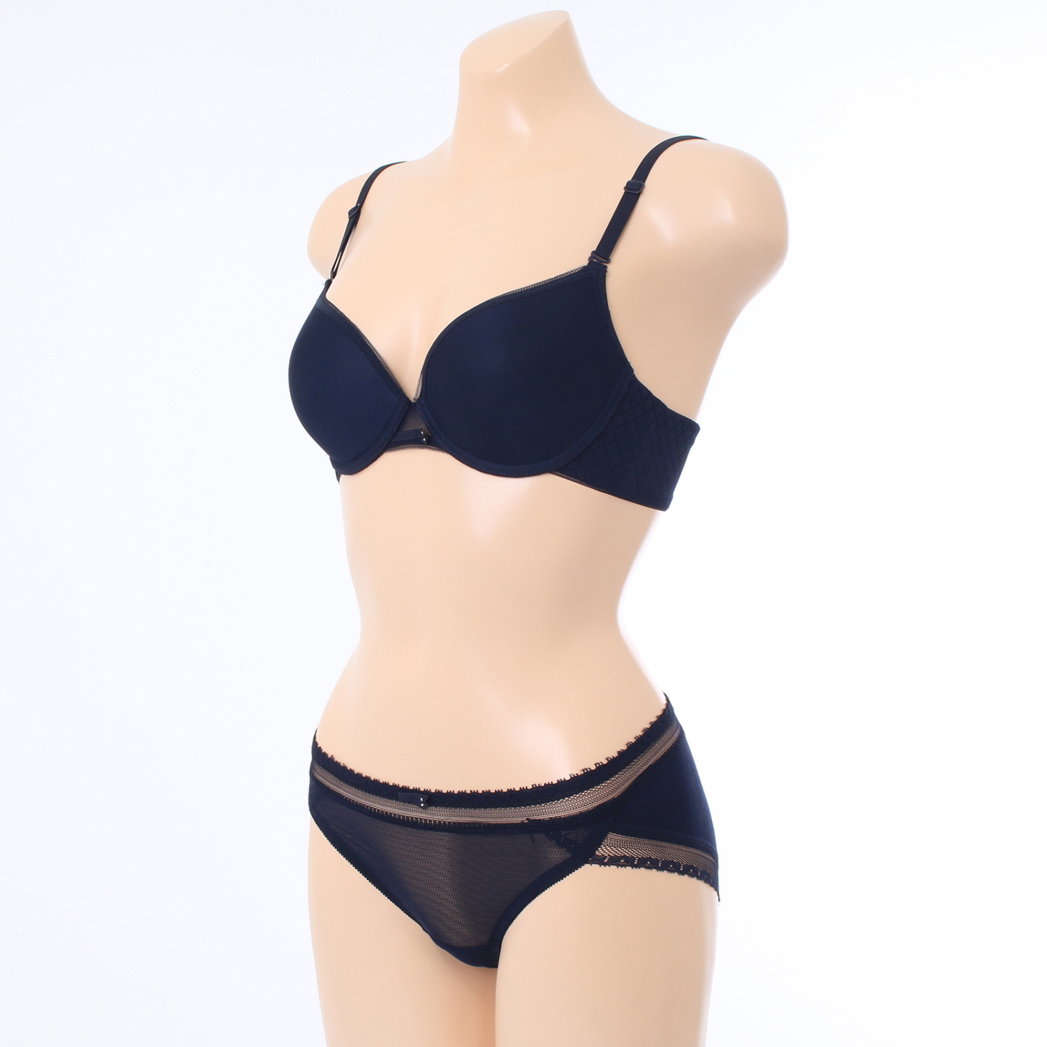 홀이 크고 시원한 메쉬원단에 허리와 다리에 소폭레이스를 매치하여