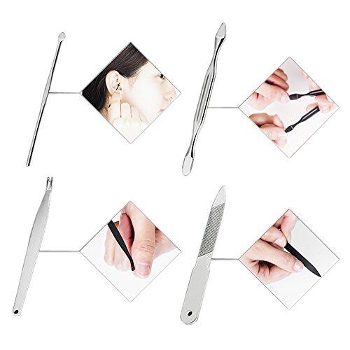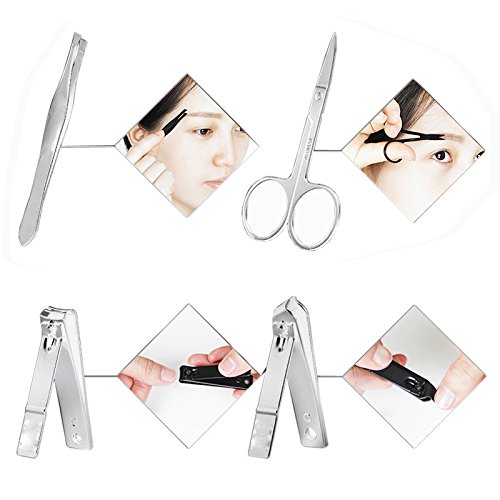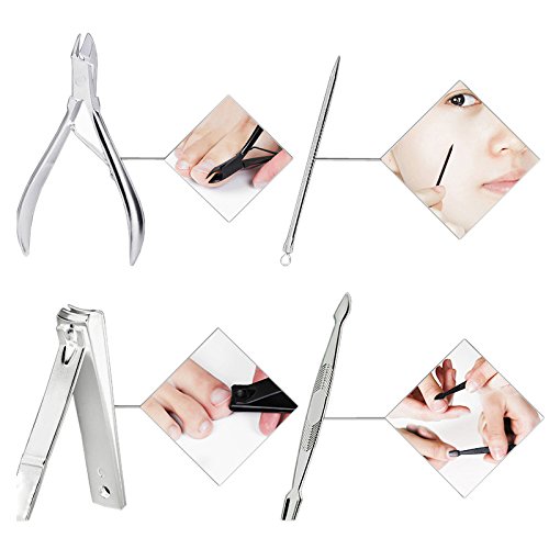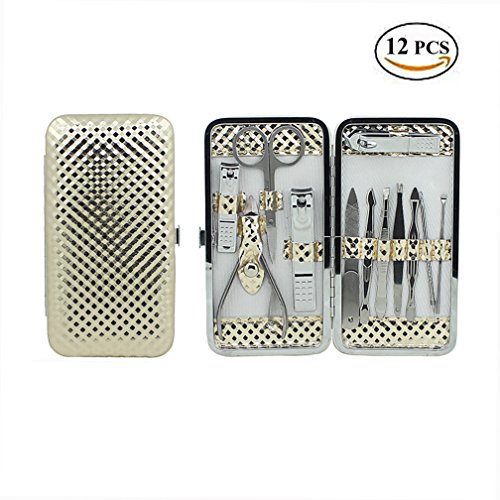 Binding : Apparel Product Description Manicure set is good quality with affordable price, you deserve it. Product Dimensions: Case: 6.3 x 3.4 x 0.4 inches, 8 ounces Contents: 12 Pcs of manicure tools, including: 3 Nail clippers / trimmers of different sizes 1 Multipurpose scissors 1 Pliers 1 Ear pick 1 Cuticle trimmer 1 Eyebrow tweezer 1 cuticle knife 1 Nail file 1 Acne needle 1 Dirt cleaning suppository Important Note: Both of the clipper and pusher are extremely sharp, please keep away from children. 0