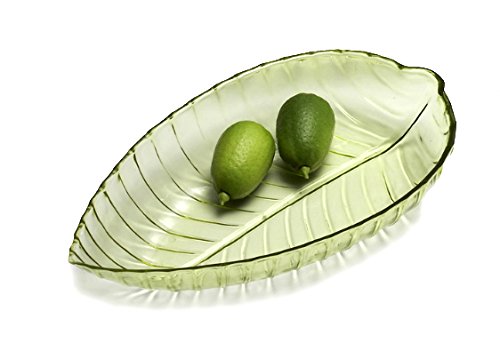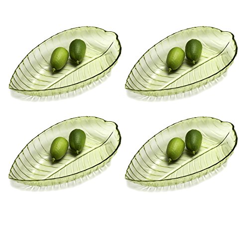 Oval Leaf Shaped 12 inches Acrylic Plastic BPA Free Serving Plate Candy Snack Dish Bowl Clear Light Green Set of 4, LF181-GN4P