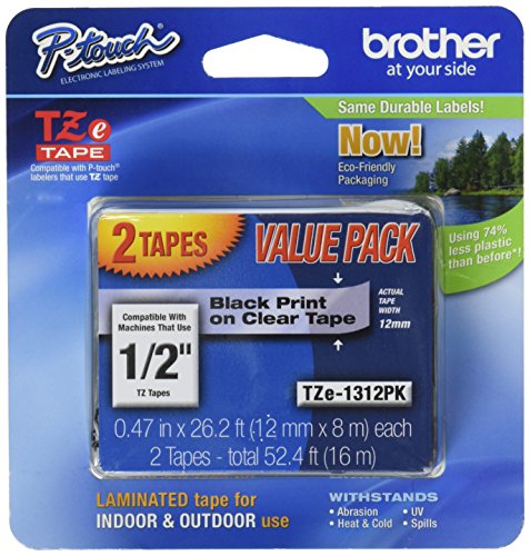 -. Title : Brother TZe Tape - 1/2 Inch, Black on Clear, 2 Pack - TZe1312pk
