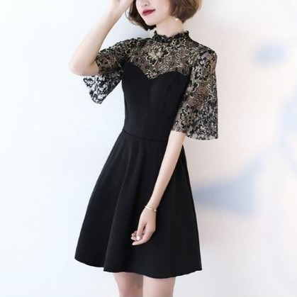 パーティードレス ミニ丈 ドッキングワンピース レース ゴールド ブラック 透け感 シースルー ハートカットネック 華やか 上品 大人 お呼ばれ drgz2201