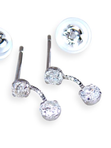 -. Feature : 材質 : K18WGホワイトゴールド / 宝石素材 : 天然ダイヤ/4石/計0.3ct(片方0.15) / 大きさ/縦縦横約10.0×3.0mm直径(大)約3mm(小)約2.9mm / ピアス芯太さ/約0.7mm / キャッチ/K18WGシリコンカバー付き高級キャッチ