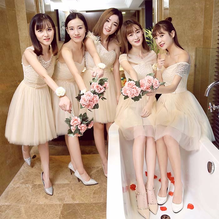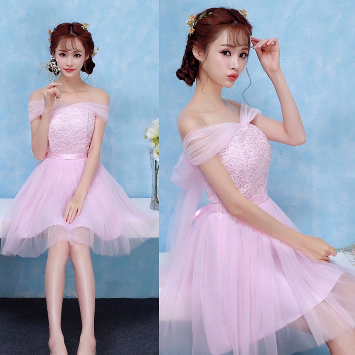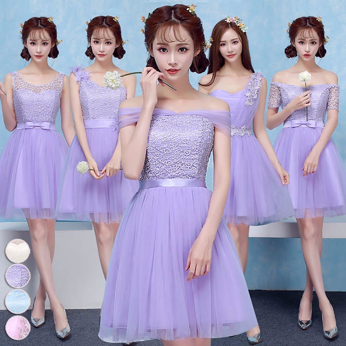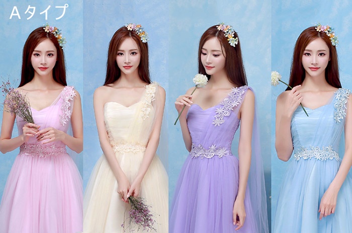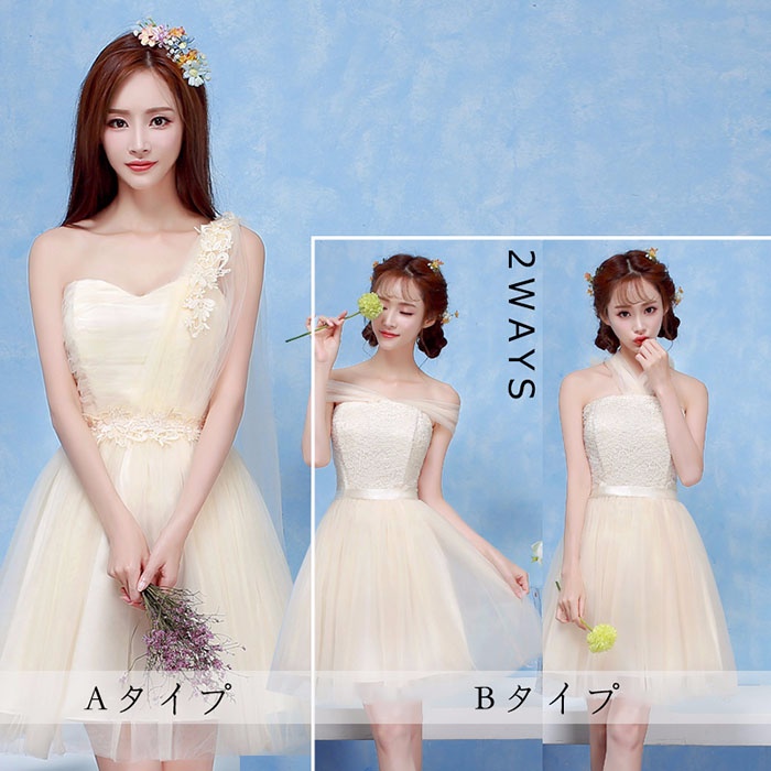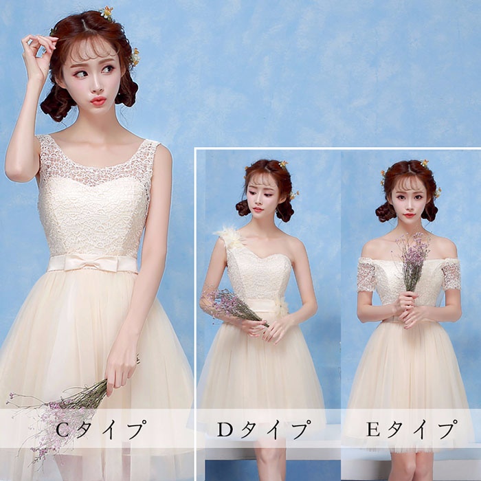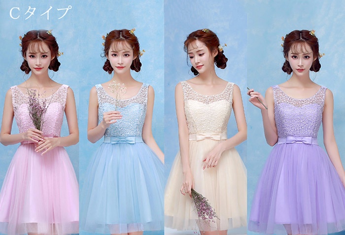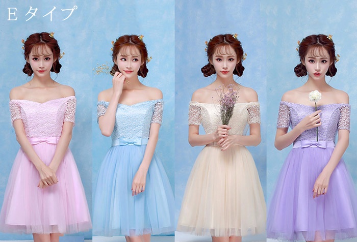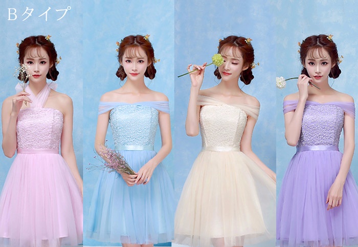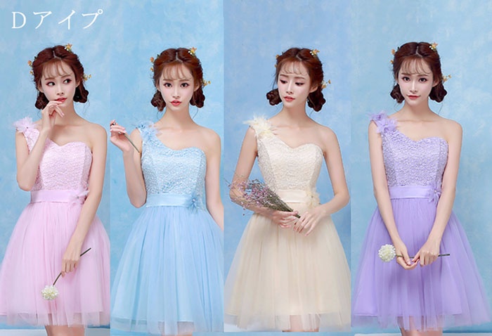 商 品 名 :ブライズメイドドレス ショートドレス プリンセスドレス ゴムタイプ 花嫁 ピンク パープル ブルー シャンパン da003n1