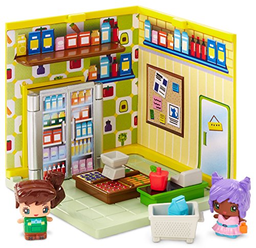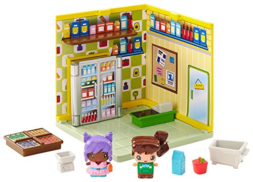 The My Mini MixieQ’s world is just like ours… except it’s totally cube-ular! Stock your shelves, shop for groceries or sell fresh produce at this colorful playset! Themed accessories include a shopping cart, fruit stand with scale, a bag, groceries, converyer belt with fixed cash register, plus 2 exclusive My Mini MixieQ’s characters and 1 Mystery Figure - for tons of creative play! Each collectible figure also has interchangeable Pop and Swap hair and outfits so you can customize your My Mini MixieQ’s, your way. You can also choose the Café, The Beauty Salon, The Museum, The Pizza Parlor, The Yoga-Dance Studio, The Candy Shop, The Dress Boutique and more. Each Mini Room connects to other Mini Playsets and Mini Rooms, and stacks on top of other Mini Rooms for extended fun! They’re little, they’re cute, and they’re cube-tastic! Check out the full Series of My Mini MixieQ’s characters at play.myminimixieqs.com. Each sold separately, subject to availability. Colors and decorations may vary.Feature