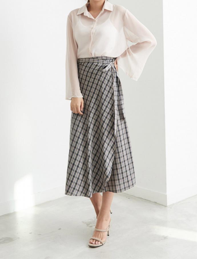 Check Long Skirt Flare Coordination Long skirt A line Fall