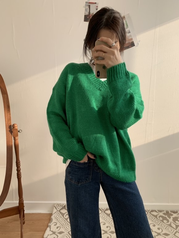 색감이 정말 너무 비비드하게 이쁜니트에용 루즈핏으로 여리여리해보이구요 소매라인도 길게 나와서 여리해보이는 효과가 더 큰거 같아용 네크라인은 브이라서 역시 더 여리해보이구요 저는 이너로 흰티 레이어드해서 입었더니 더 이쁘더라구요 사이즈는 넉넉하게 나와서 55부터 77까지 나오구요 색상이 이뻐서 얼굴까지 화사해보인답니다 지금은 아우터안에 입어주시다가 봄에는 단품으로 입어주시면 되겠죠^^ 청바지 하나에만 입어주셔도 스타일리쉬하게 연출 가능한 꼭! 소장해야할 니트에용^^