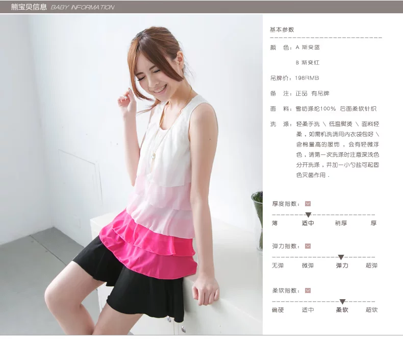 前面100%涤沦雪纺梭织没弹性 后面莫代尔针织有弹性 |