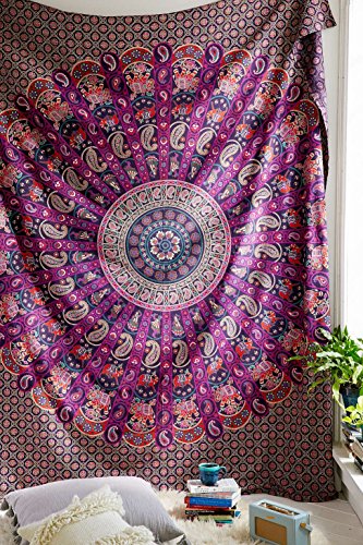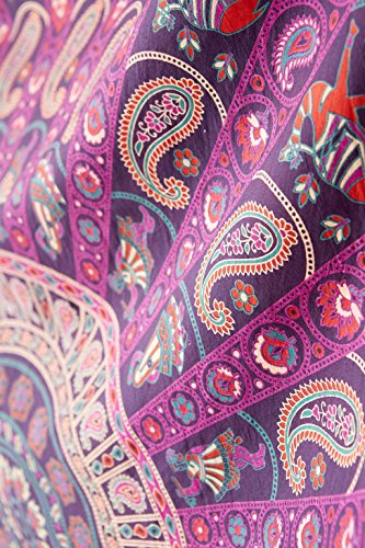 POPULAR HANDICRAFTS HIPPIE MANDALA BOHEMIAN PSYCHEDELIC INTRICATE FLORAL DESIGN INDIAN BEDSPREAD MAGICAL THINKING TAPESTRY 84X90 INCHES,(215X230CMS) BRIGHT PURPLE