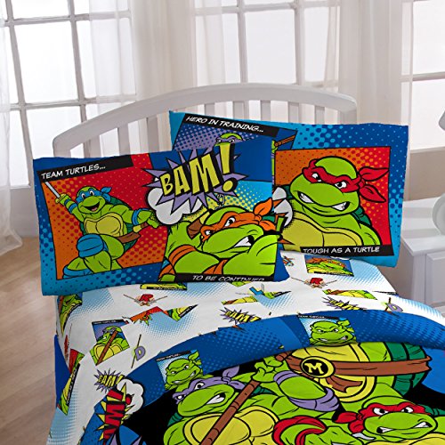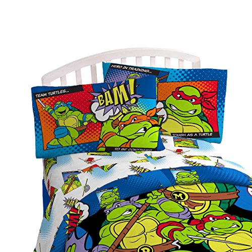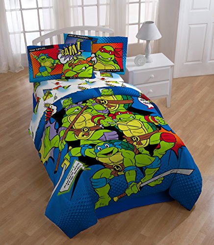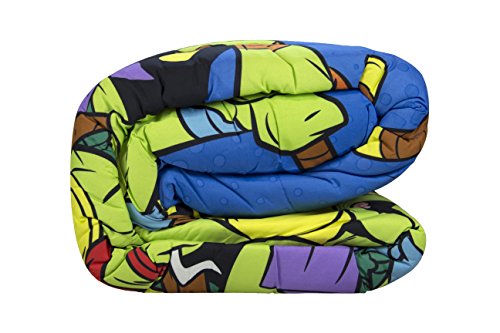 Transform any child's bedroom with a bold and colorful Nickelodeon teenage Mutant Ninja Turtles reversible twin/full comforter. Sure to keep you warm, this reversible comforter is stuffed with polyester fill for loft and cozy comfort. Quilt stitching holds fill in place and adds decorative flair. Synthetic polyester fill is naturally antimicrobial and holds its shape after washing. Reversible design allows you to instantly change the look by simply flipping the comforter over. Twin/full comforter measures 72" x 86". additional bedding coordinates and accessories sold separately on this page. Easy care, machine washable. ImportedFeature