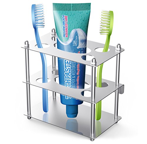 Toothbrush Holder, Stainless Steel Toothbrush and Toothpaste Holder, Razor Blade Organizer Stand for Bathroom - Square