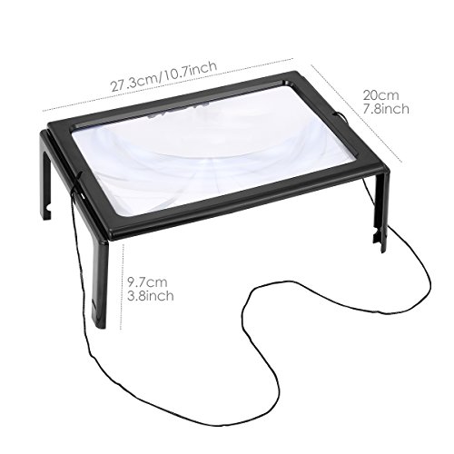 -. Title : Foldable LED Lighted Reading Magnifier, Oenbopo Hands-free Rectangular Full Page Magnifier 3X Magnifying Glass with Light Desktop Lamp for Close Work, Sewing, Cross Stitch, Inspection, Repair, Crafts