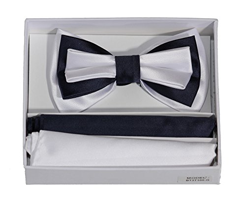 Studio : Brand Q Publisher : Brand Q Binding : Apparel Product Description You can't go wrong with these boxed tie sets! Each tie is crafted from a quality polyester material. These ties stand out from your generic bow tie because each tie is made up from two different color fabric's so they are dual-toned to provide that extra fishing touch. These are sold as boxed sets that include a pocket handkerchief for each color to the match the tie. 0