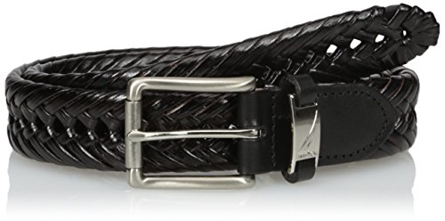 Woven belt featuring square-frame roller buckle and single keeper with logo hardware