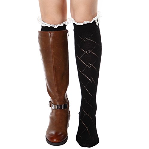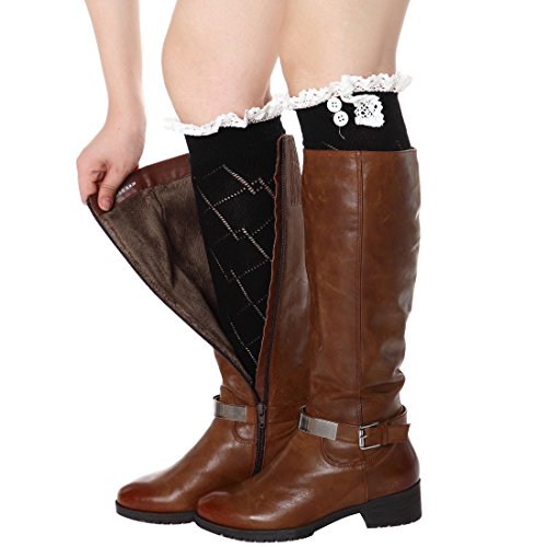 -. Title : FAYBOX Women Lace Boot Socks Trim Leg Warmers Button Cuffs Toppers