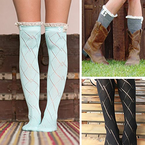 -. Feature : Material: 80% cotton / Size: 24.4 x 3.1 inches (L x W), high stretchy to fit free size / Women Lace Boot Socks Trim Leg Warmers Button Cuffs Toppers with a high quality fabric, soft and comfortable, wonderful for lovers, wife, daughter, girlfriends, female friends as gifts to show your love / Wash by hand and Dry clean sested, the hollow geometric pattern design provides a different from the single boot socks, bring a little lovely and sexy, fit for log boots in fall / Colors available to provide more choices to choose the one your favorite, well match for skirts to show the slim leg, also an outwear fashion to brighten up your look