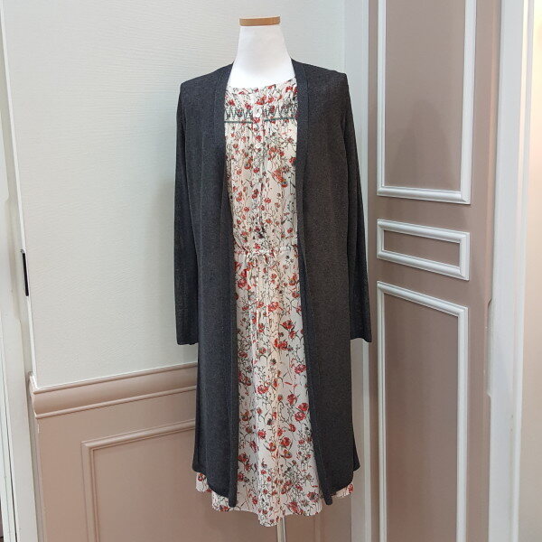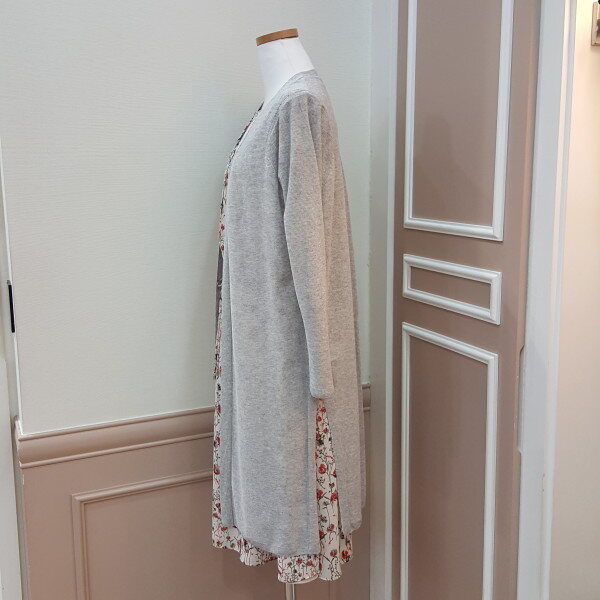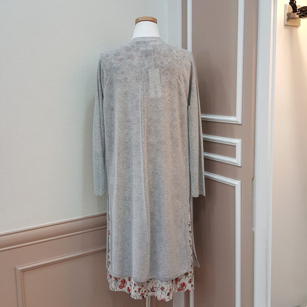 간절기때 가볍게 걸칠 수 있는 롱 가디건.소매와 등라인에 레이스를 넣어서 고급스러움을 강조.