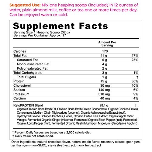KetoPROTEIN is an ideal protein solution for the ketogenic dieter, weekend warrior, busy executive, student, gamer or anyone looking to boost mind and muscle power. Providing high quality proteins and fats from chicken bone broth and coconut MCTs rich in caprylic acid plus energizing antioxidant and adaptogenic herbs, KetoPROTEIN is designed to take your performance to the next level! 0 |