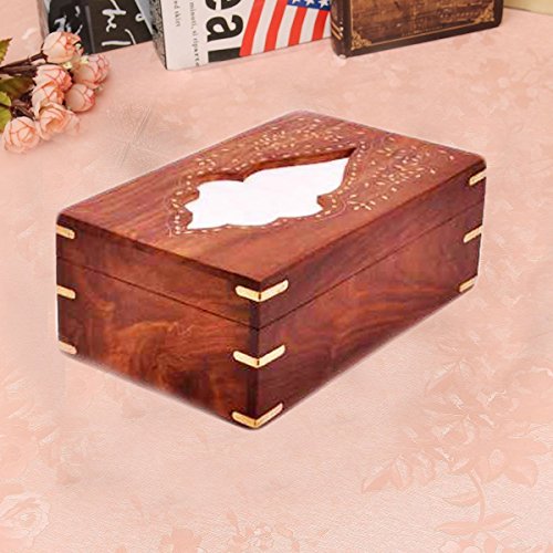 Thanks Giving Gift for Loved Ones, Wooden Leaf Design Inlay Work Wooden Rectangular Tissue Box Cover / Tissue Holder - Perfect Fit Wooden Tissue Paper / Wooden Tissue Paper Dispenser - 10 X 6 Inch