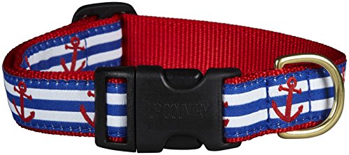 Studio : Up Country Publisher : Up Country Binding : Misc. Product Description The Up Country Anchors Aweigh Dog Collar is the perfect collar for your little beach comber. Up Country's ribbon collars, leads and harnesses come in a wide variety of lengths, and in three widths. Ribbon collars are made from high-tensile strength nylon webbing with sewn on polyester/nylon ribbons. Up Country ribbons are stain and fray resistant; designed to last a lifetime. All collar and lead hardware is cast, not welded brass for extra strength. Up Country Collar Sizing - XS (6-12"); Narrow 5/8", S (9-15"); Narrow 5/8", S (9-15"); Wide 1", M (12-18"); Narrow 5/8". M (12-18"); Wide 1", L (15-21"); Wide 1", XL (18-24"); Wide 1", XXL (21-27"); Wide 1" 0