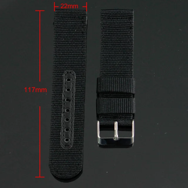 보병 22 미리메터 시계 스트랩 나일론 직물 내구성 블랙 시계 밴드 다이버 방수 Wrsit 시계 밴드 교체