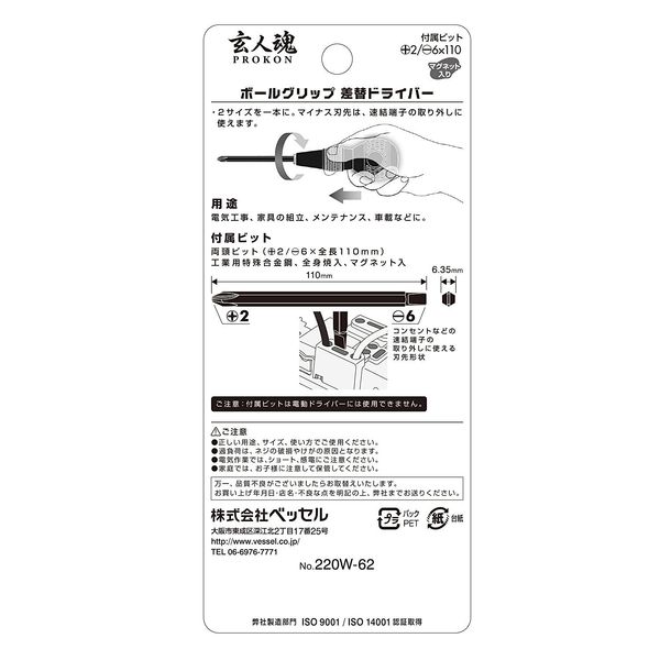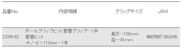 ●付属ビット:両頭ビット(-6/+2×全長110mm)