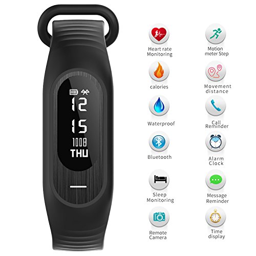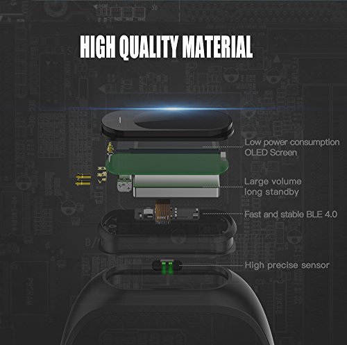 -. Feature : High Quality Material: 9.2*0.6*0.8 inches OLED screen with shcok resistant case. TPU band is looking fashion and wearing comfortable. The energy core more stable and faster working. User can set brightness and move wrist to display in APP. All material has upgraded. / Multi-Function: Effortlessly and Quickly track all-day activity such as Pedometer, Distance, Calories Burned Measuring, Sleep Monitor, Phone Call ID Show/SMS Text Show/Social Media Notification (Facebook Twitter Skype etc), Meeting/Medicine/Sedentary/Drink Reminder. / Health Assistant: Blood Pressure Heart Rate Monitoring will show on OLED screen, can quickly measure BP and HR during wearing. Electrocardiogram display needs to select measurement in APP and put finger on metal part of screen. All data will show on screen and sync to Phone App. / Waterproof And Remote Camera: IP67 resistant provide for user don't need take off when washing, bathing and swimming. (Don't wear it diving under water) It could long-range control your smart phone to take photos, user will not worried about find other people for help. / Wide Compatibility: Although the smart bracelet has upgrade, but still support Devices with Apple IOS 8.0 / Android 4.4 / Bluetooth 4.0 or above. Battery capacity supports 7 Days Standby by 1 hours charging full power. It is really a good for family and friend. Packing list: Smart Watch*1, USB Charger*1, User manual*1
