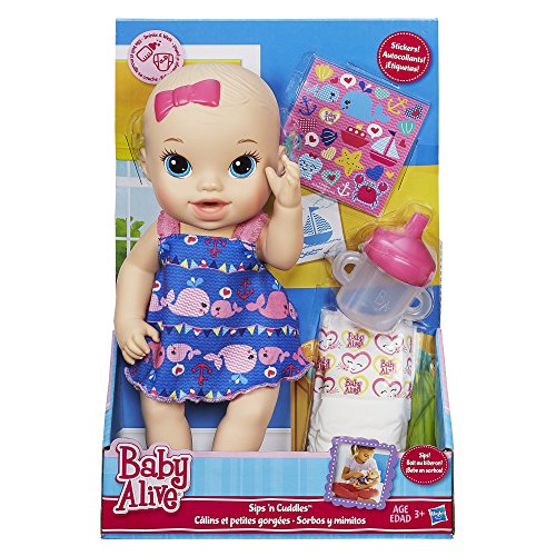 - Feature : Sips 'n Cuddles doll lets your little one experience the fun of real babies / Comes with bottle and diaper / Doll drinks and wets / Includes Sips 'n Cuddles doll, removable dress, bottle, 1 diaper, stickers, and instructions