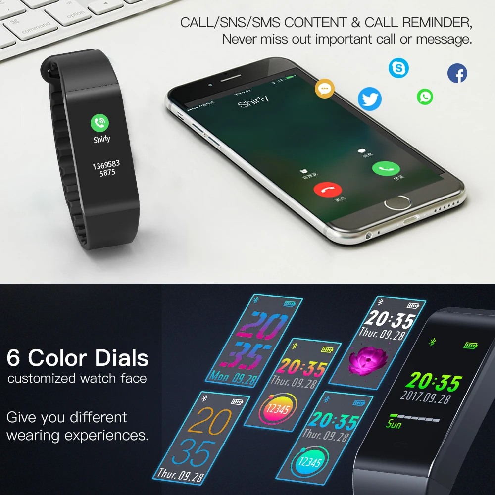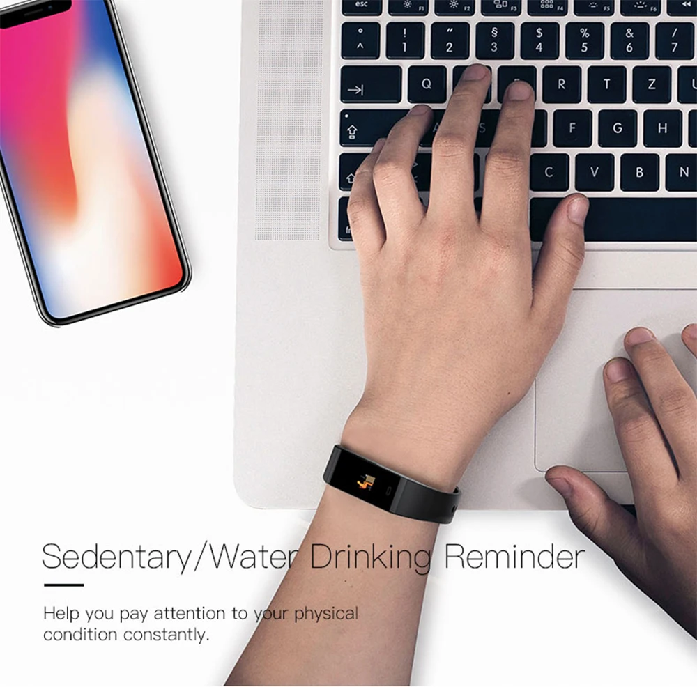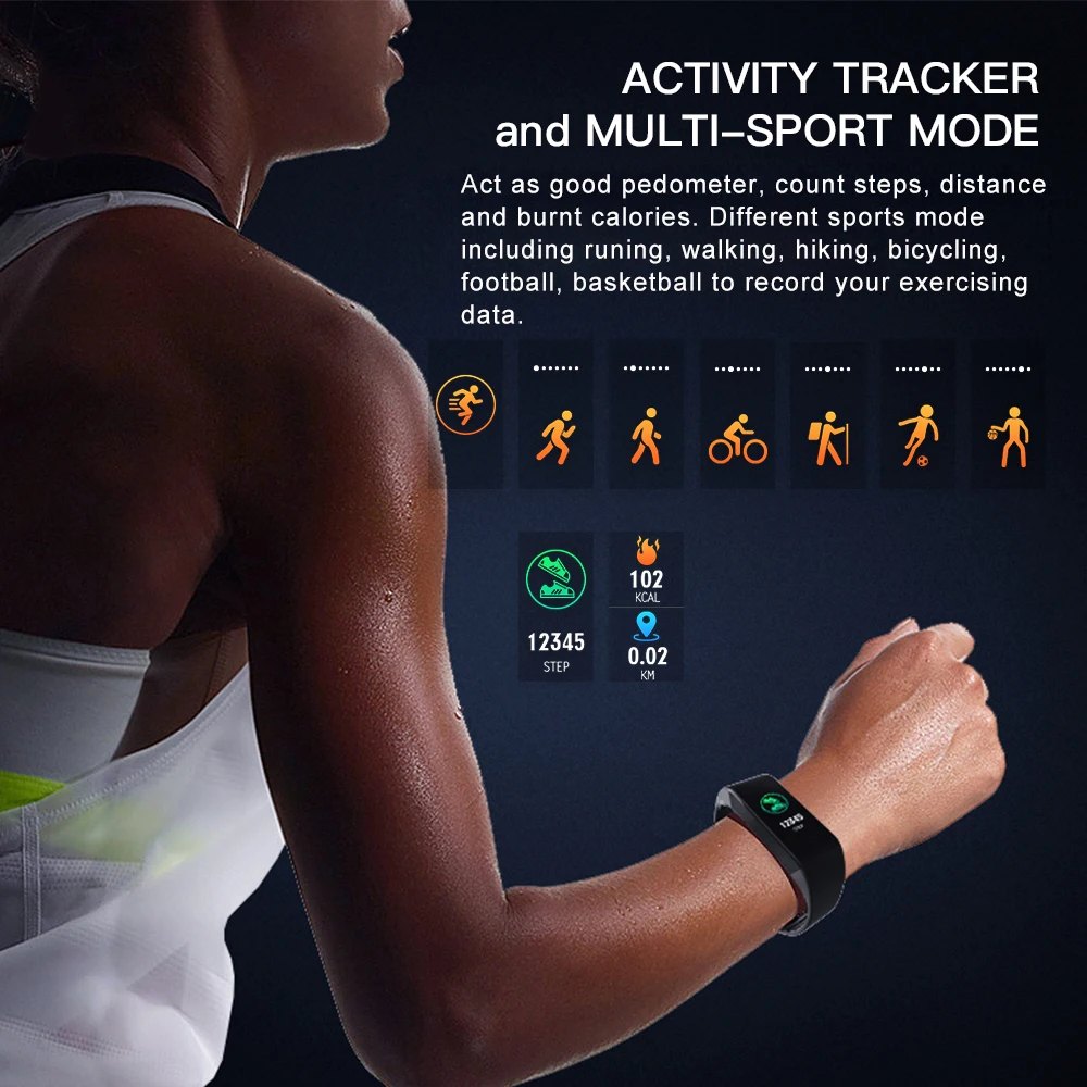 Function:Fitness Tracker,Message Reminder,Blood Pressure,Call Reminder,Passometer,Alarm Clock,Remote Control,Sleep Tracker,Heart Rate Tracker,Push Message