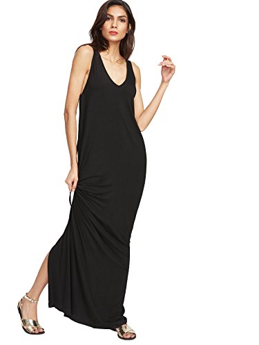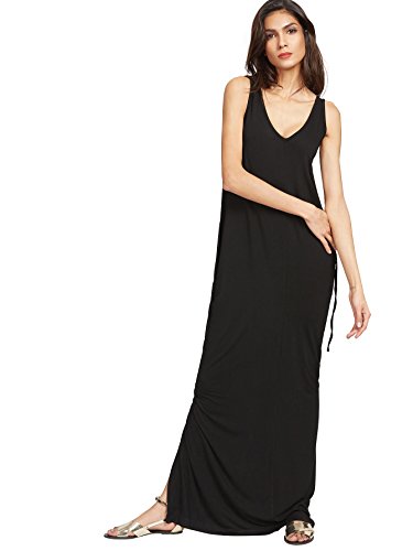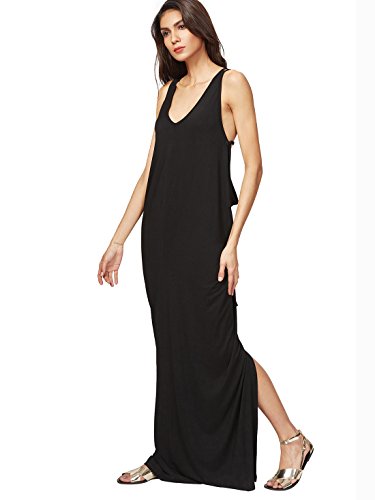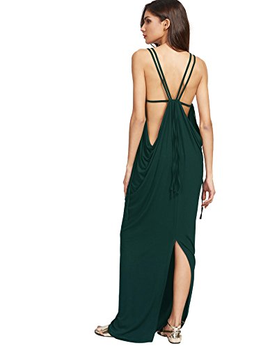 Sleeveless, v neck, spaghetti straps, side adjustable straps, crisscross, backless, back Split, long maxi dress