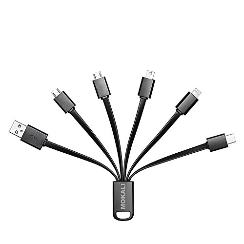-. Feature : Length: 13.5CM 6 in 1 multi USB charge cable. Please note: This cable is Not MFI certified and Not support Sync Data / Connectors: 1*USB Type C, 1*8 pin Lightning, 1*mini USB, 2*Micro USB, 1*USB 2.0(USB2.0 is the power supply connector) / Functions: Charge for iPhone 7/7plus, Huawei Type smart phones, Samsung phones, USB type C phones, power banks, cameras and many devices. / 1.5A Maximum charging speed: Charge your smart phones and devices safely and easily. / Warranty: 12 Months warranty by MOKALI