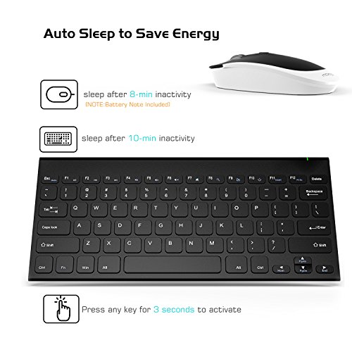 2, The keyboard will enter sleep mode after being idle for 10 minutes, press any keys to activate the keyboard and restart the mouse with on/off button.